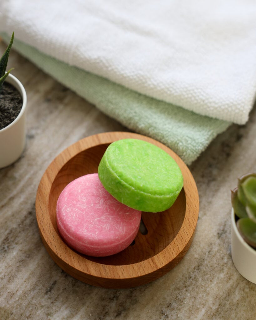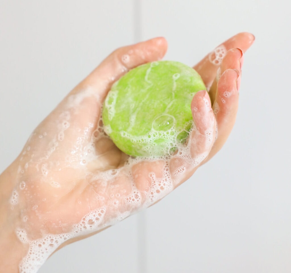 Das feste Shampoo direkt auf den nassen Haaren oder in den Händen mit Wasser aufschäumen.