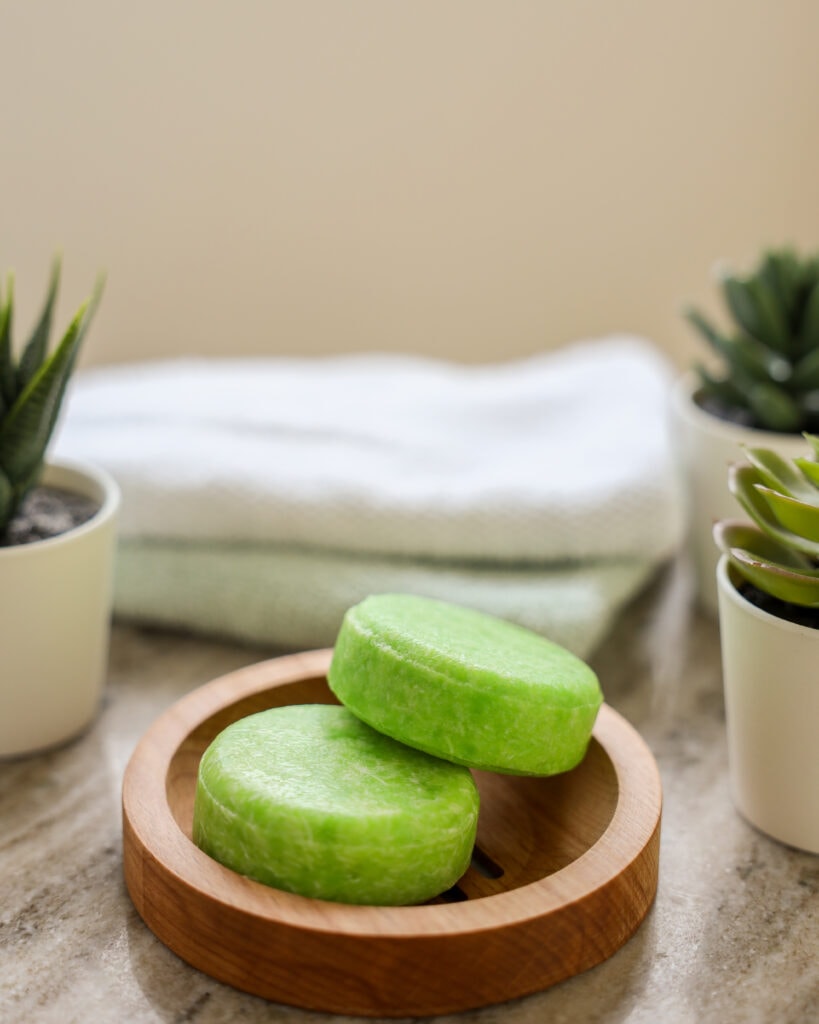 Das feste Shampoo direkt auf den nassen Haaren oder in den Händen mit Wasser aufschäumen.