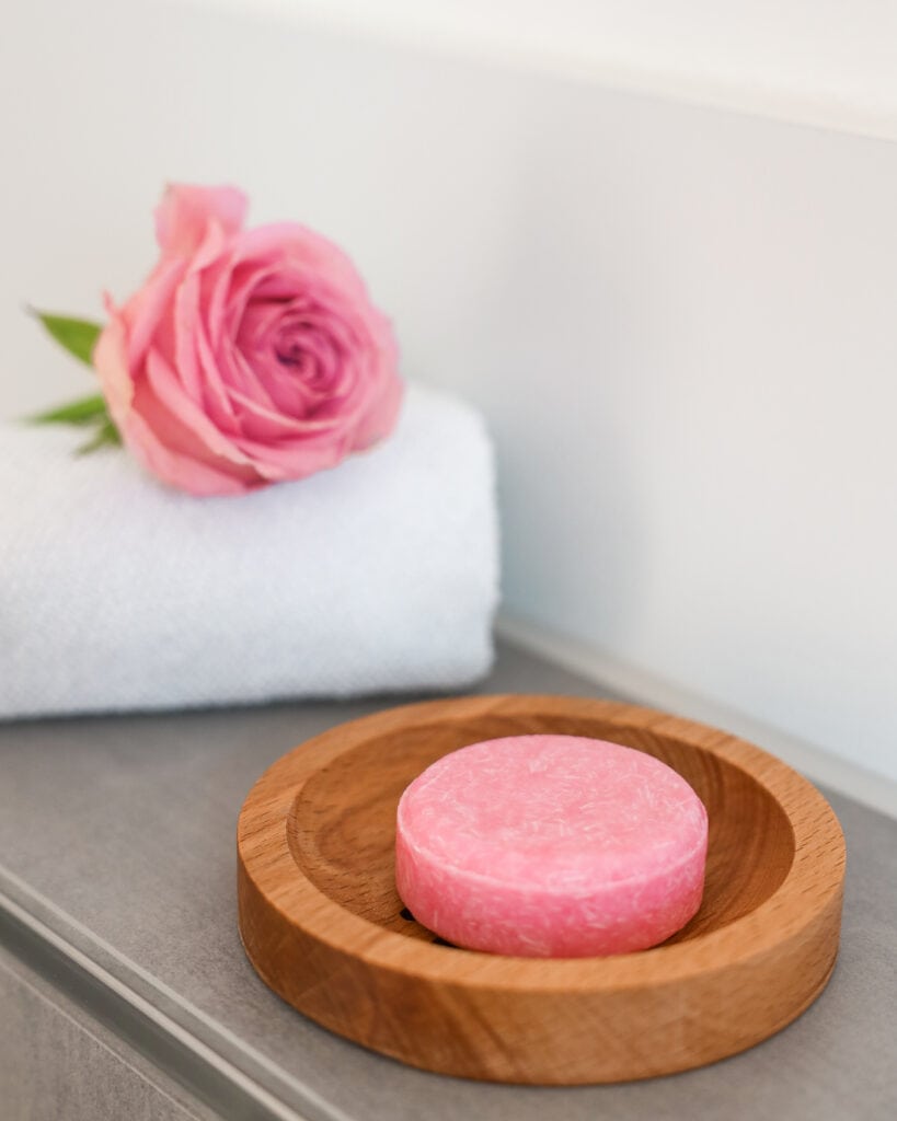 Verwende das feste Shampoo zur sanften Reinigung deiner Haare.